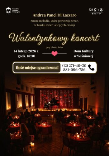 Beskidzka Fundacja Hospicyjna wraz z Hospicjum Domowym w Wiśniowej serdecznie zaprasza na koncert walentynkowy 14 lutego 2026r. (sobota) do Gminnego Ośrodka Kultury i Sportu w Wiśniowej o godzinie 19.00. Ze względu na ograniczoną liczbę miejsc wymagana jest wcześniejsza rezerwacja stolika.…